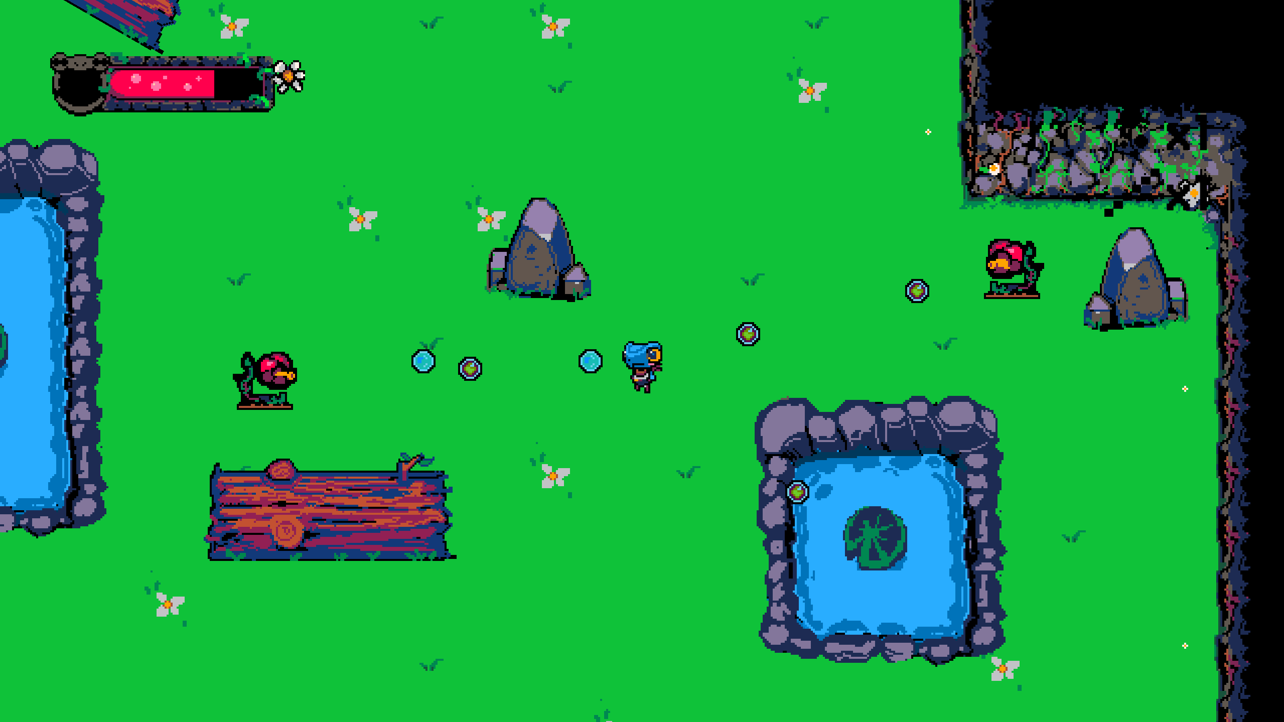 The game is a dungeon crawler where you have to defeat all the enemies of each room to continue. As you progress through the rooms you gain power until the little frog is fully evolved, unlocking an especial trait for the shooting ability. But beware, you are not the only one who evolves, enemies may have changed.